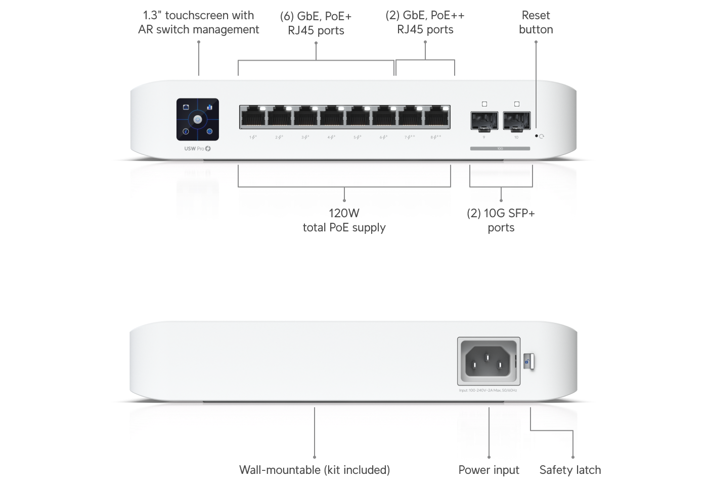 An 8-port, Layer 3 switch with PoE+ and PoE++ output.